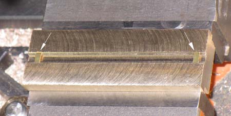 (Foto anklicken) ...0,45 mm dick abgesägt. (Für das Sägen