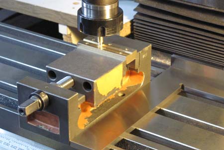 und dann mit einem 4-mm-Fräser noch 0,4 mm tief. Der Y-Support bleibt dabei fest