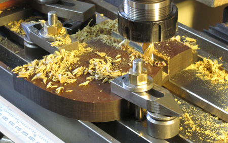 ausgerichtet und mit der Klemmplatte festgehalten. Mit einem 2-mm-Fingerfräser