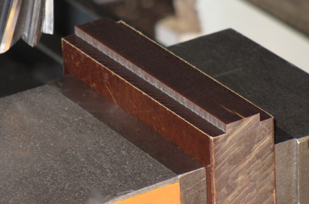 Novotex-Platte wird für die Lötvorrichtung getrennt. Der 10-mm-Fingerfräser