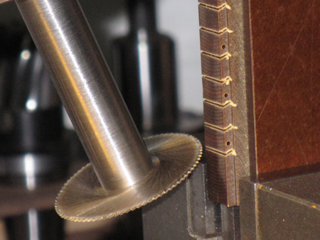 Schlitze in einem Sägedurchgang gesägt. Die Sägetiefe muß vorher eingestellt