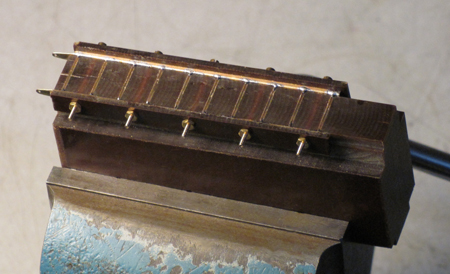 Maschinenschraubstock gespannt) werden wieder zwei kurze Blechstücke eingelegt