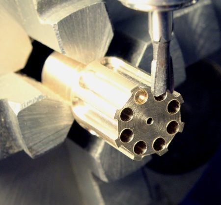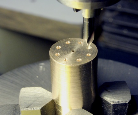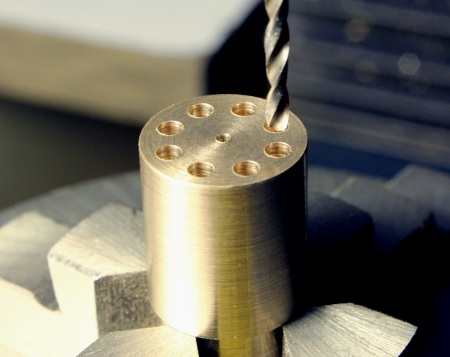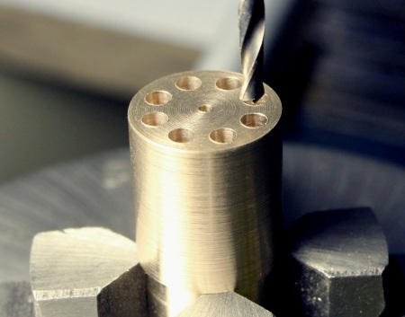 Teilkreis-Durchmesser 9,8 mm dann acht Zentrierbohrungen gesetzt (je 45°