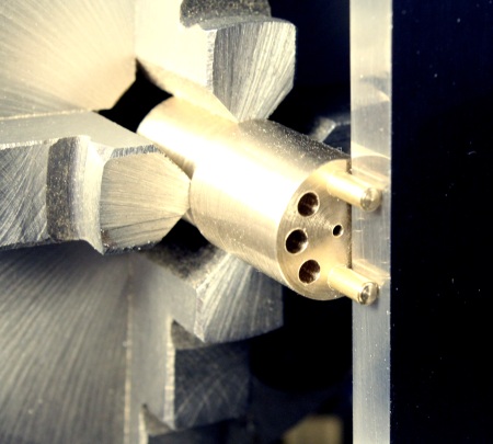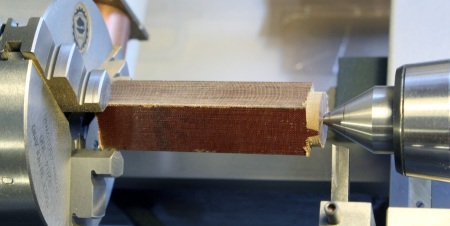 dieser Zapfen im Backenfutter gespannt und am anderen Ende wird die Spitze