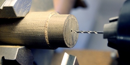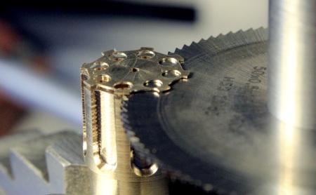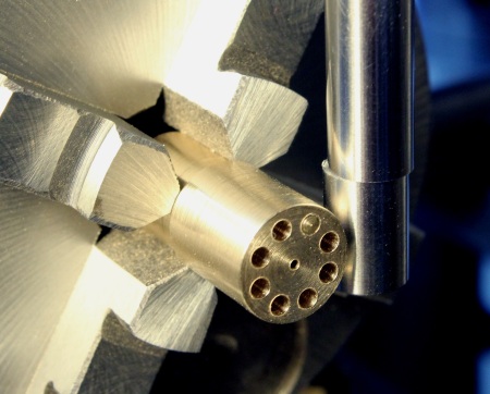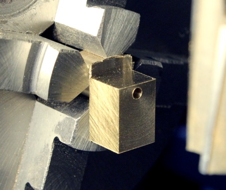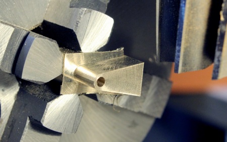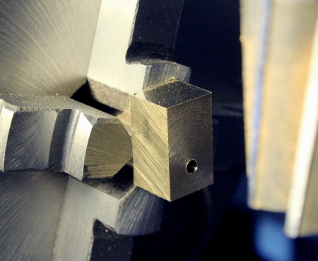 gesägt, plangedreht und erhält eine 2,4-mm-Durchgangsbohrung.