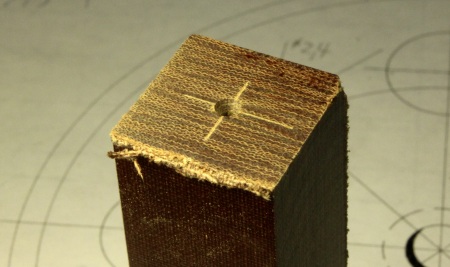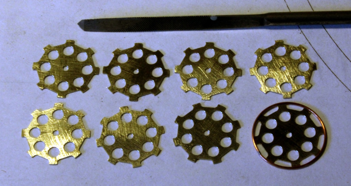 Im Bild: der Rest nach dem Absägen (je 0,3 mm dick) der acht Teile, vier werden