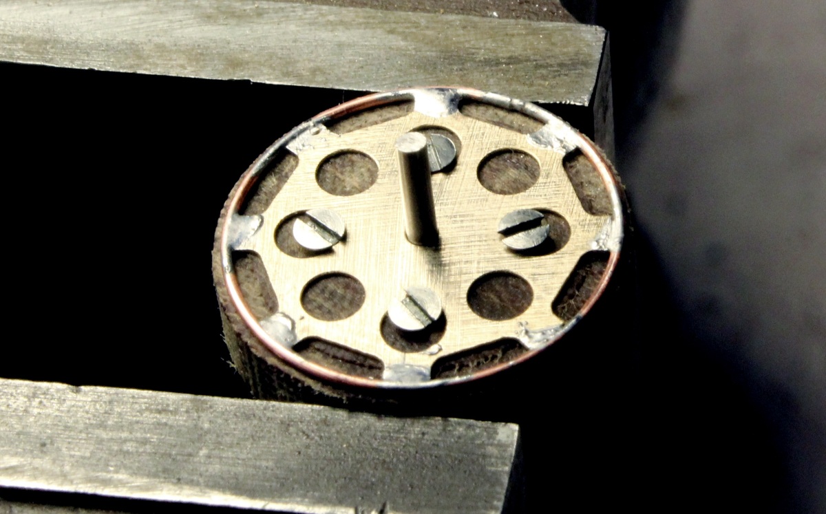Jede Scheibe wird mit vier M1-Senkkopf-Schrauben an dieser Pertinax-Scheibe