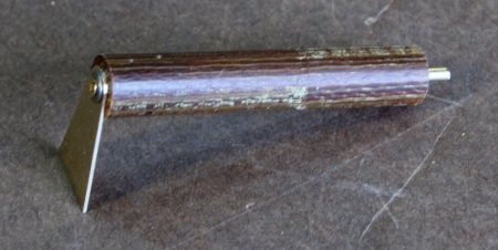 das aus einer Dreikant-Nadelfeile geschliffene Entgrat-Werkzeug, mit dem ich