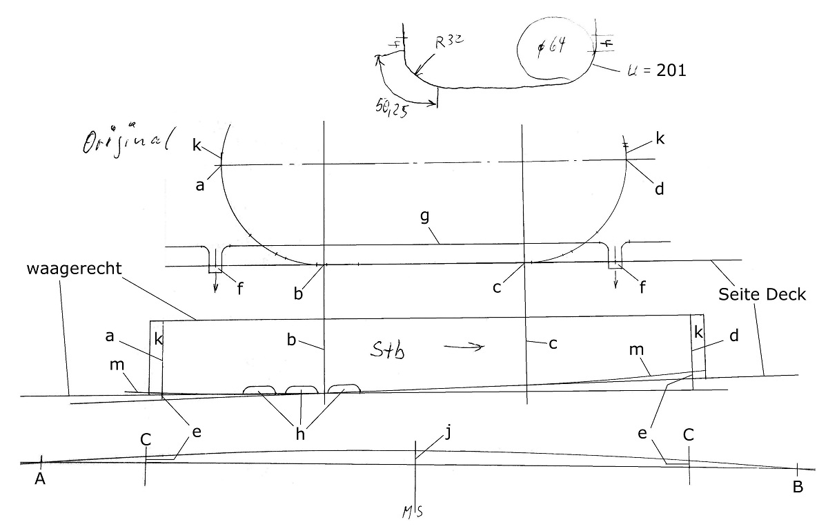 wurden unten abgekürzt. Die Stützen stehen im Winkel zu KWL, nicht zum Deck!