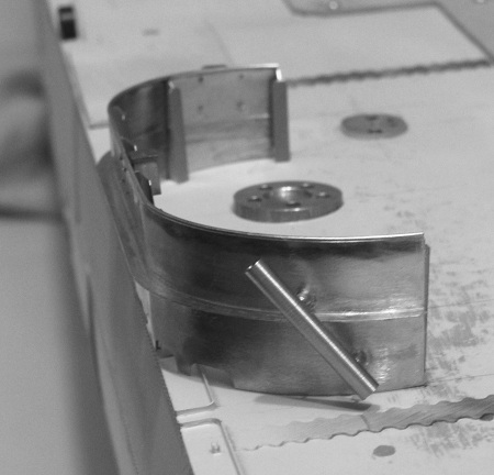 Etwa auf halber Schiffslänge stehen auf den Seitengängen je zwei 20-mm-Flak OERLIKON Mk10, umgeben von Waffenwannen (Schanzkleidern). Ihre Oberkanten sind vollkommen waagerecht, die Unterkanten folgen Deckssprung und Balkenbuch. Somit muß man eine stimmige Abwicklung konstruieren, bevor man sie gewölbt, wie beim Original biegen kann.