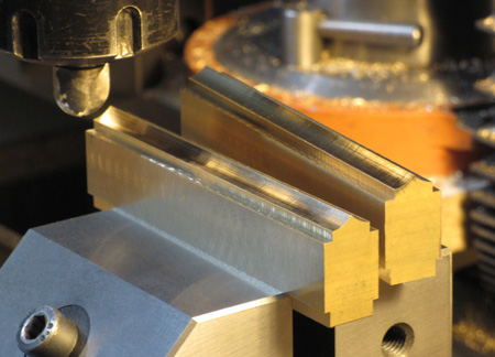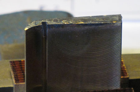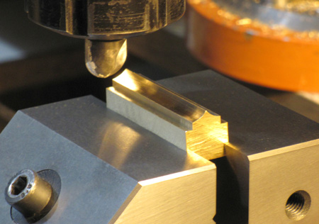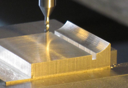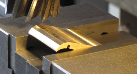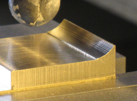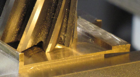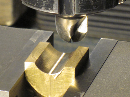 Zweischneider-Radius-Fräser mit Spanwinkeln 0° (Messingbearbeitung!) gefräst und