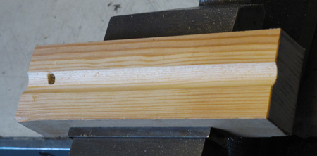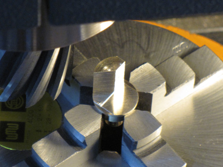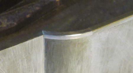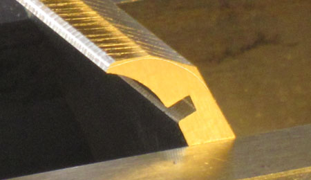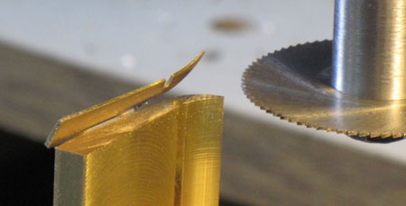 Eigenbau-Radiusfräser (siehe weiter oben) wird eine Rundung gefräst. Abstand zur