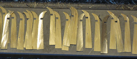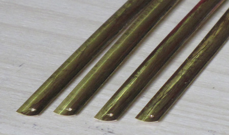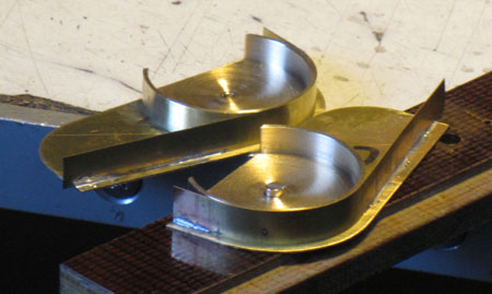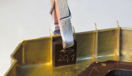 und zwei gebogene, 6,6 mm breite 0,2-mm-Ms-Blech-Streifen werden zu Plattformen