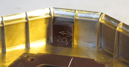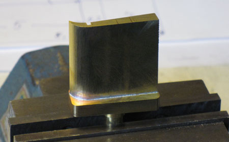 die Symmetrie stimmt ! - 5 mm hohe Stufen so angefräst, daß als Mittelstück eine