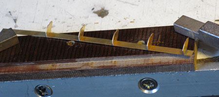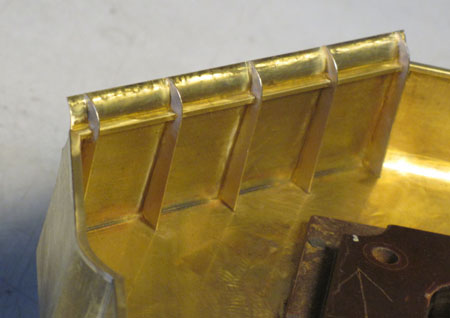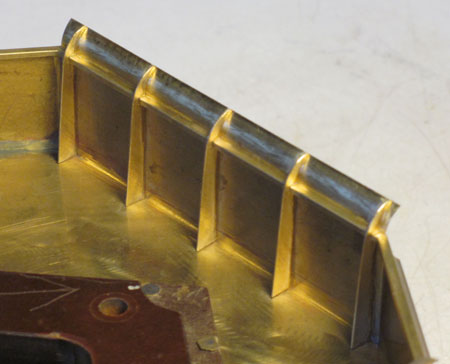 oben gefräst hatten, sind hier außen an die nach vorn gerichteten Bleche der