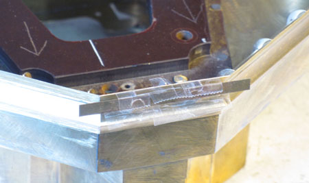 Nach dem Anriß wird zuerst die lange Seite gefräst, hier noch nicht ganz fertig.