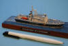 Best.-Nr.: pl045 (M 1:50): Maße des Modellrumpfes: 975 x 177 x 43 (Tiefgang) mm, Modellgewicht: schon 2,90 kg, 2 Propeller Ø 28 mm, Bugstrahlruder, auch Spantenriß im Maßstab 1:33,33, 1 Planbogen