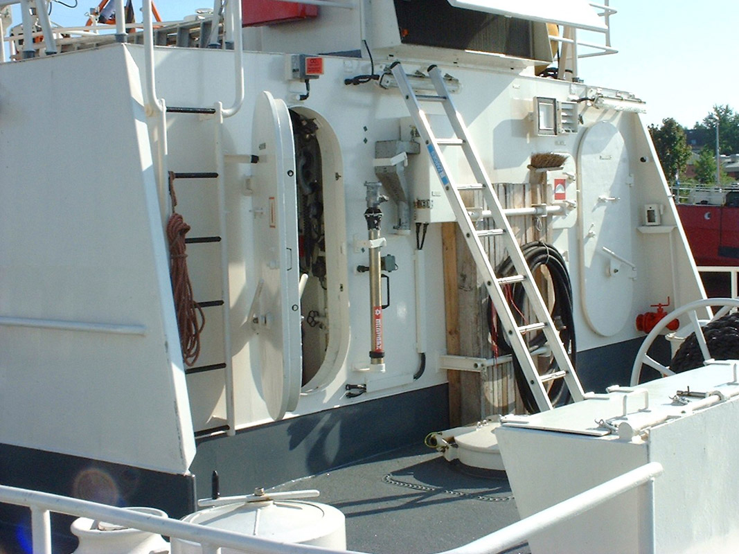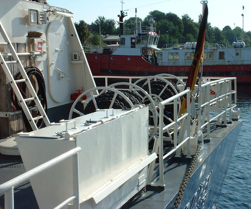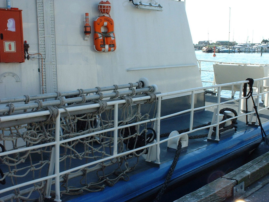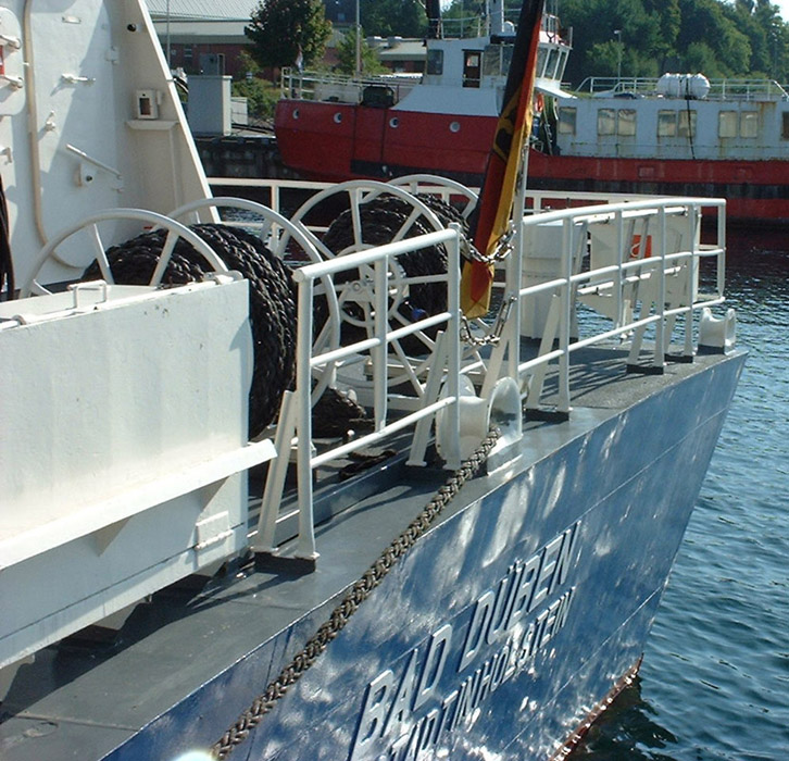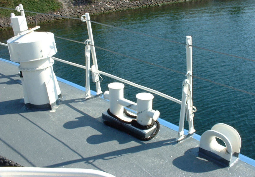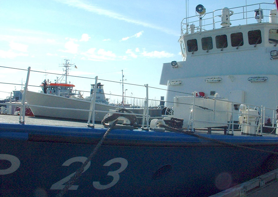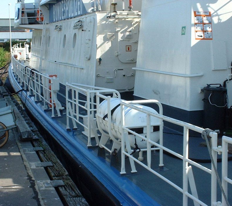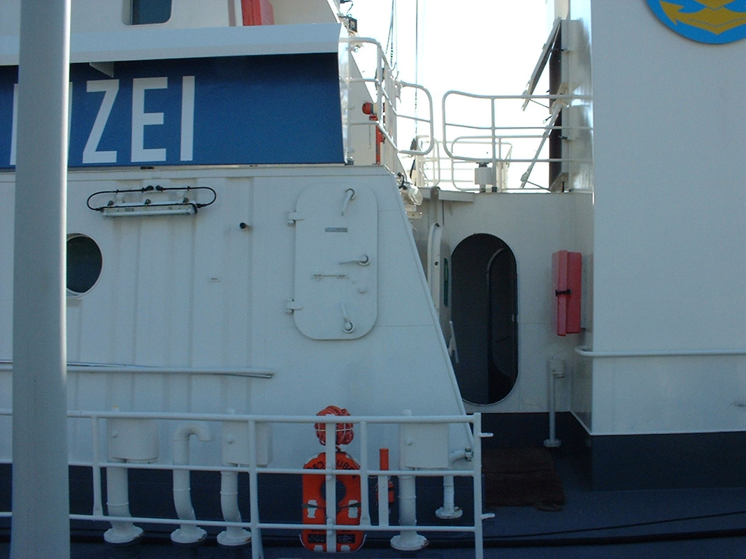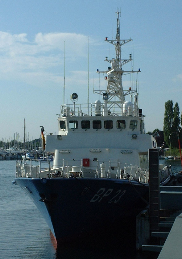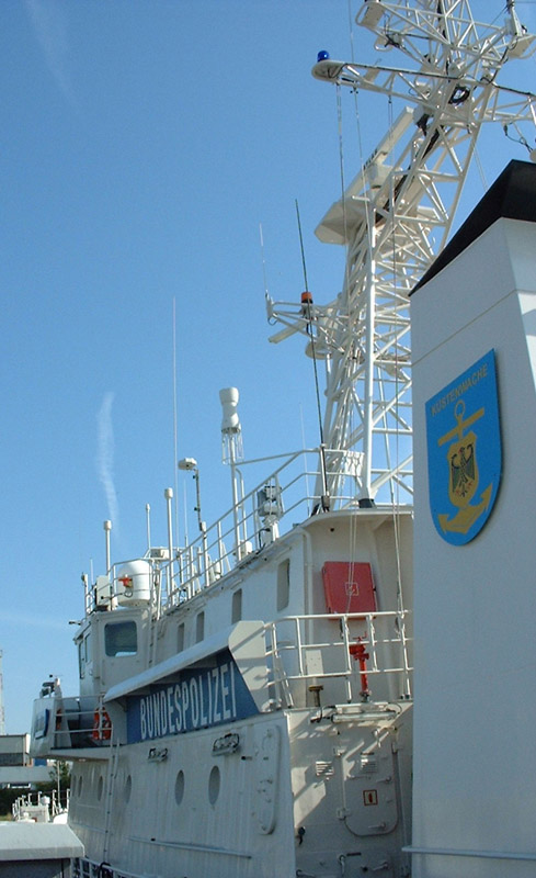 An dieser Stelle veröffentliche ich 124 Fotos vom Patrouillenboot der Bundespolizei BAD DÜBEN (BP-23). Die Fotos hat mir freundlicherweise Herr Klaus Dieter Rex zur Verfügung gestellt. Dafür möchte ich mich recht herzlich bei ihm bedanken. Bekannt sind die Boote aus den neueren Folgen der Fernsehserie "Küstenwache". Ursprünglich sollten die Boote Raketenkorvetten für die DDR-Volksmarine werden. Eine Skizze von der BAD DÜBEN habe ich inzwischen fertiggestellt. Auf dieser Skizze habe ich - eine Neuheit - die jeweiligen Kamerastandpunkte und Fotografierrichtungen für jedes einzelne der hier abgebildeten Fotos eintragen. Auf diese Weise erhält man, besonders bei unklaren Bildausschnitten, einen genauen Überblick darüber, welche Stelle des Schiffes fotografiert wurde. Pläne im M 1:75 und M 1:50 kann ich Ihnen anbieten, hier. Mit den Plänen kommt eine Foto-CD-ROM mit den Fotos dieser Seite in der Original-Dateigröße, also nicht auf Bildschirmgröße verkleinert, wie diese hier...