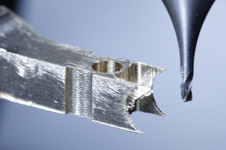 1-mm-Fingerfräser, mit dem ich eben die beiden inneren Ausfräsungen gemacht