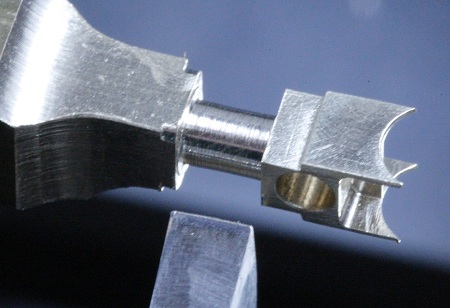 gefräst. Der Zapfen rechts paßt in die Querbohrung vom Dipol. Wie man