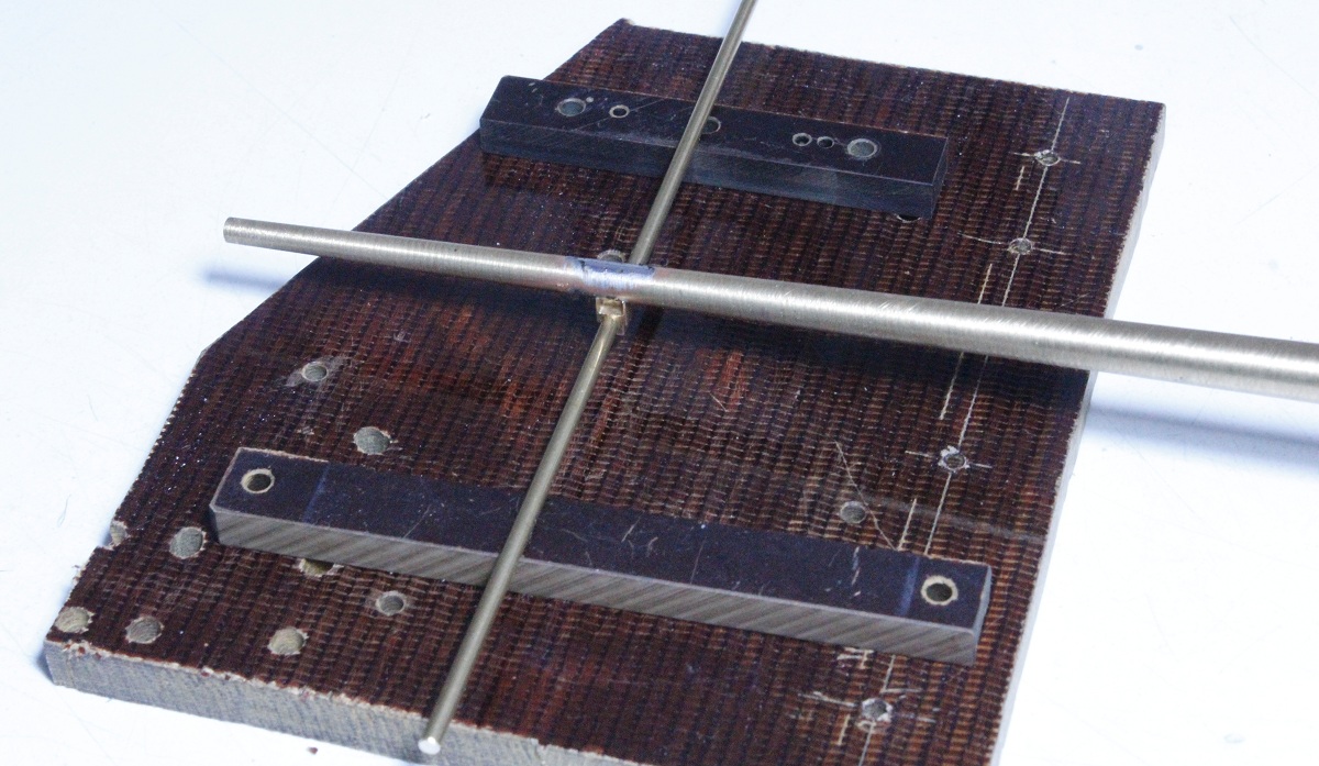 eingerichtet und diese "Rah" auf zwei gleich hohe Unterlagen aus Pertinax