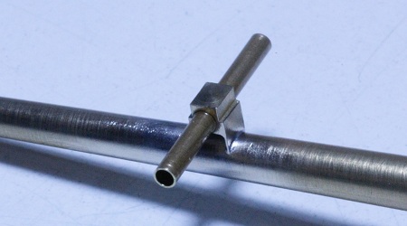 0,8-mm-Bohrung gebohrt. Im Bild sieht man, wie ich den waagerechten Träger an