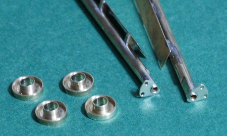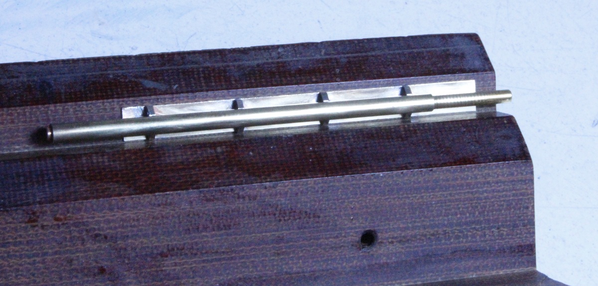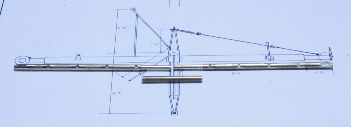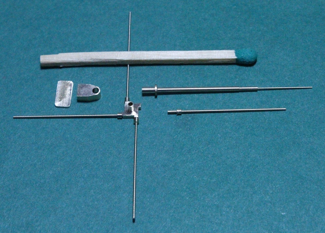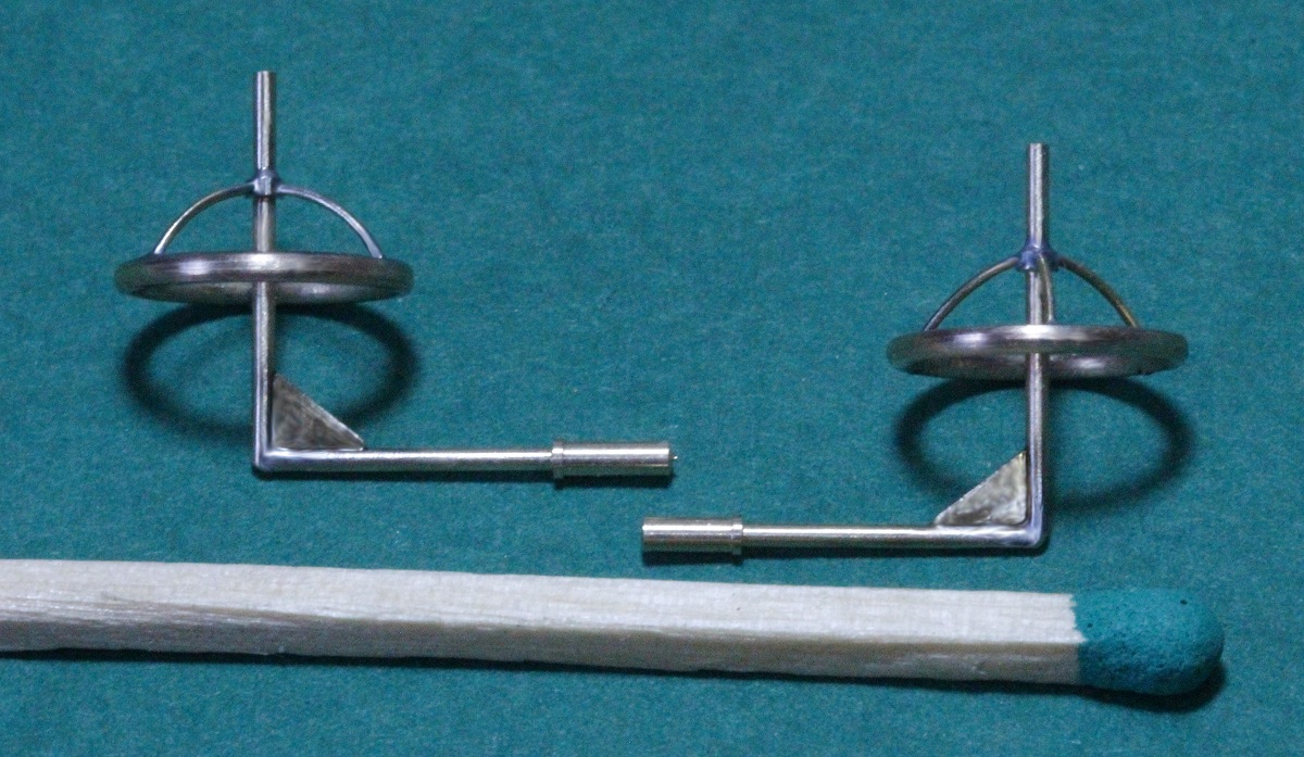 Die beiden äußeren Rahstücke drehe ich aus 2,5-mm-Rundmessing. Links (im Bild)