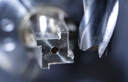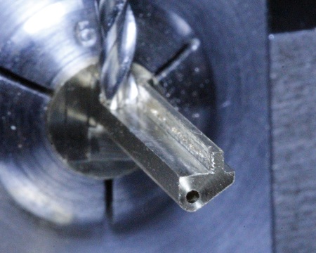 Ausdrehung und das Teil hat in der Mitte eine 0,8-mm-Durchgangsbohrung, hier