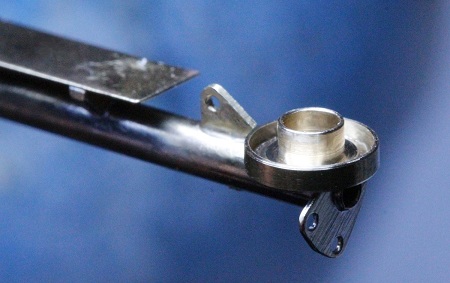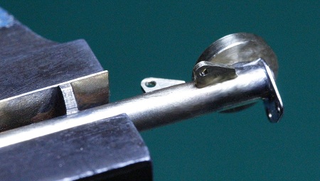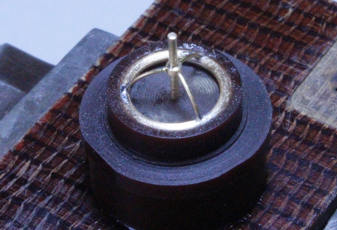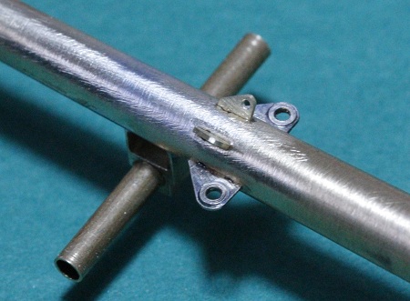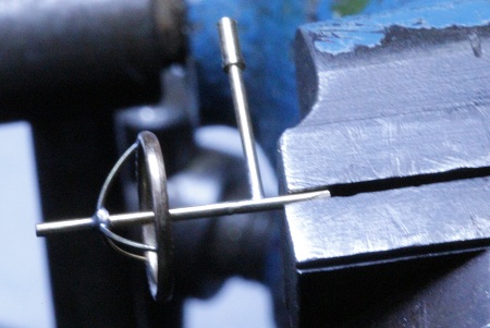 oberen Enden noch an der Verdickung der Achse angelötet. Dabei kühle ich das