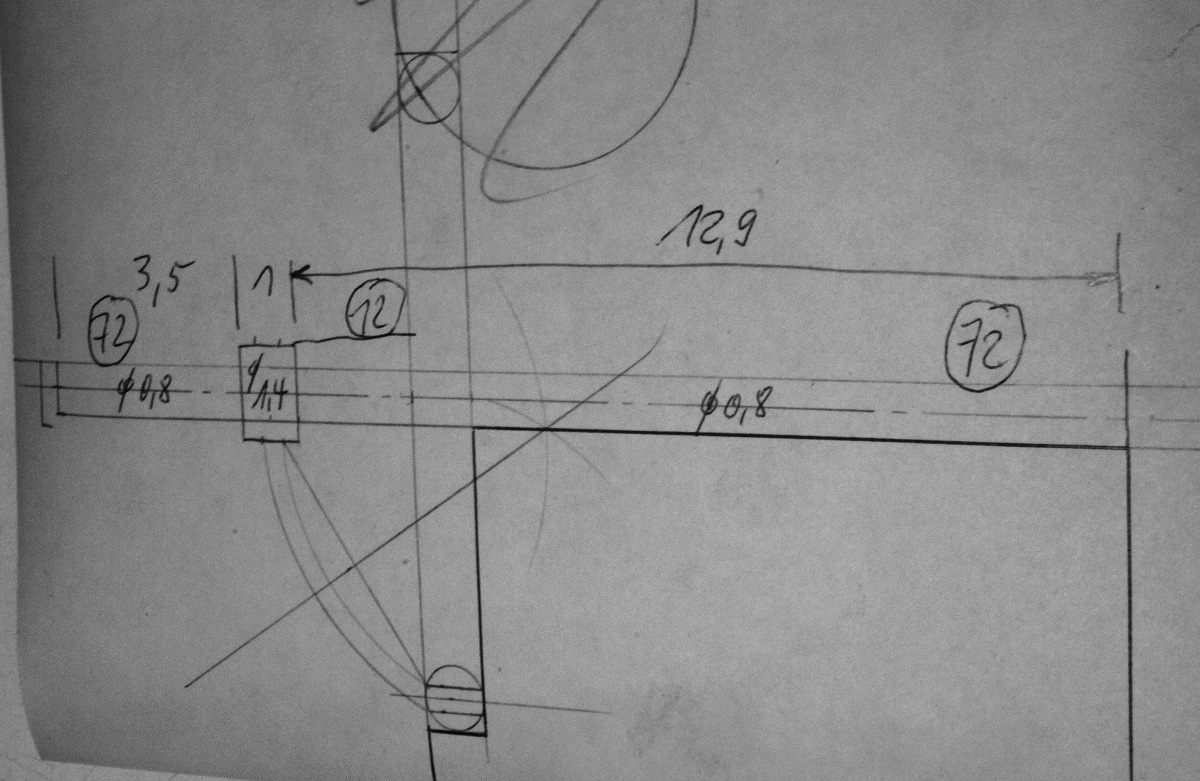 1,4-mm-Verdickung am oberen Ende. Die Zahlen in den Kreisen (72, 12, 72) sind