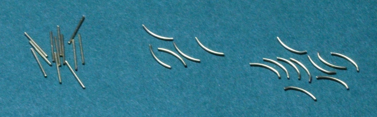 Für die Speichen habe ich 5,6 mm lange Stücke von weichen 0,4-mm-Ms-Draht mit