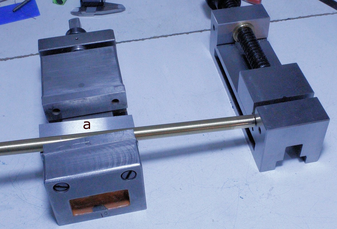 Im Schraubstock links liegt ein 5°-Winkel-Endmaß (a) (Fa. WABECO, mit den