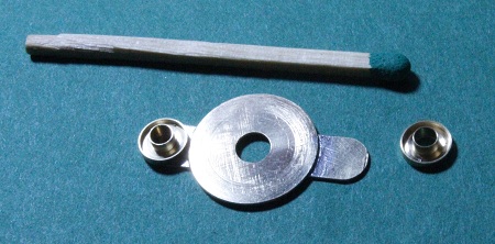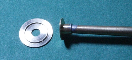 0,5 mm dünne 15-mm-Scheibe mit einem angedrehten Ring, Bohrung 4 mm. In die