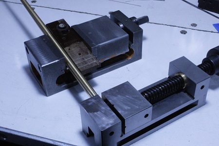 übliche Aufbau mit zwei Maschinen-Schraubstöcken (Die billigen