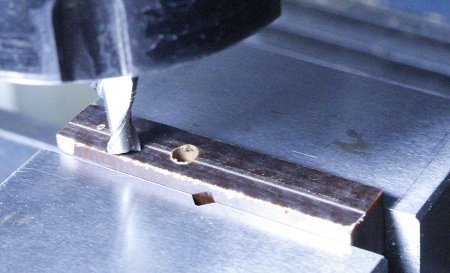 Der Bohrvorgang. Die verstellbaren Schraubböcke von meiner Fräsmaschine