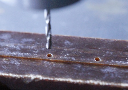 ich winzige Tropfen Sekundenkleber an die Bohrungen und gieße sie damit ein.
