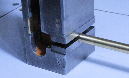 Stäbe auf 6 mm Länge abgetrennt. Man erkennt, daß sie gegeneinander fluchten.