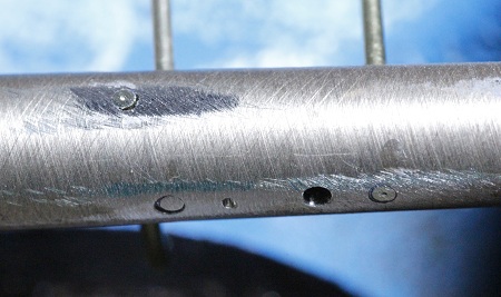 6 mm unterhalb vom Flansch habe ich zwei 0,55-mm-Bohrungen in das Mastrohr