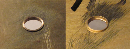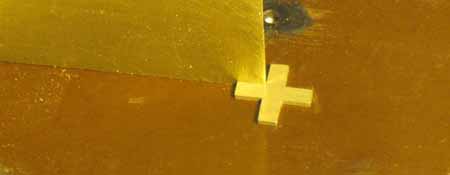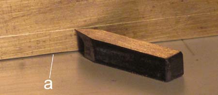 in das weiche Ms-Blech und die noch weichere Sperrholzunterlage drücken, liegen