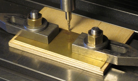 rundum 2 mm Aufmaß mit meinen Spanneisen auf eine Sperrholzunterlage geklemmt