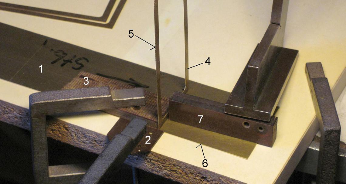 später die 0,4 mm dicken Ms-Bleche der Schrägwände gelötet werden.