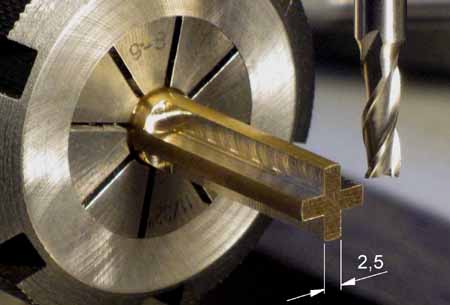 Teilgerät angefräst. Entscheidend ist das viermalige Maß 2,5. Erst als ich