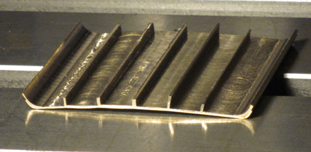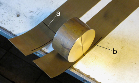 verdeutlicht, wie sehr weit halbhartes Messingblech zurückfedert. Weil der