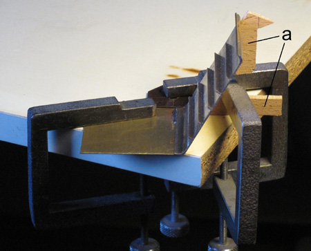 hintere Wand gelötet. Dabei hilft eine schnell aus Sperrholz gesägte Stütze (a)