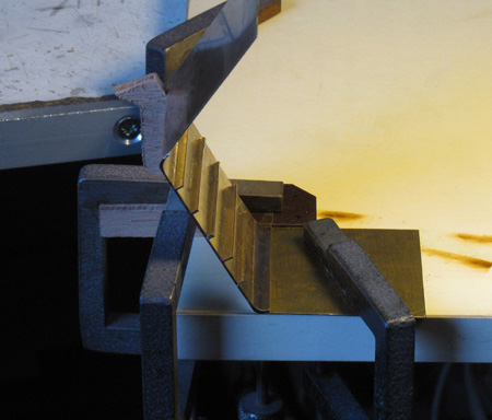Laubsäge. Den geraden Anriß machte ich mit einem aufgeklemmten Stahllineal. Ich