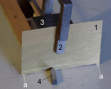 Unterkante (Deck!) gegen das Pertinax-Stück (a) geschoben. Die obere Kante ist