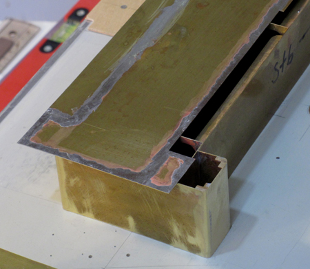 mittleren Deckshaus die oberen Kanten der Seitenwände vor dem Auflöten des Decks