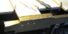 Papierstück mit Klebestreifen unverrückbar auf dem Messingblech befestigt. Beim