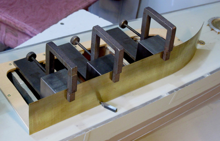 beginnt auch mit der Anfertigung der Seitenwände. Vorn sind diese gewölbt. Mit