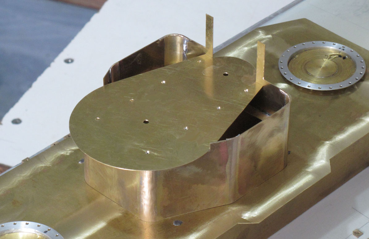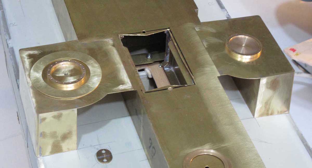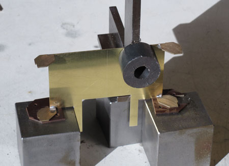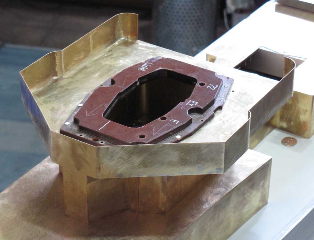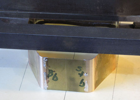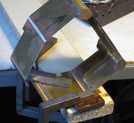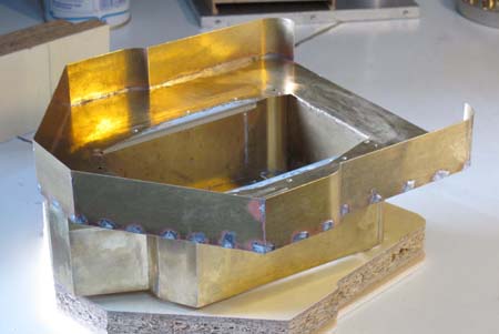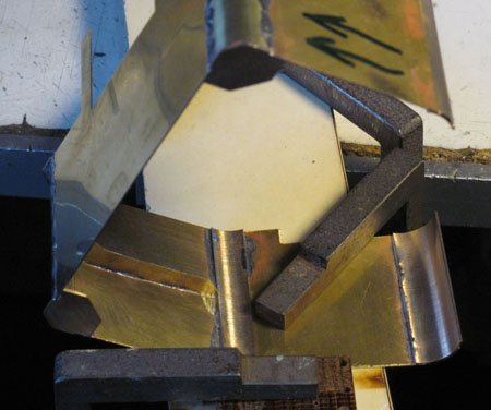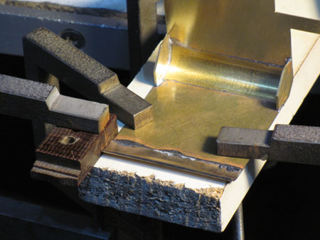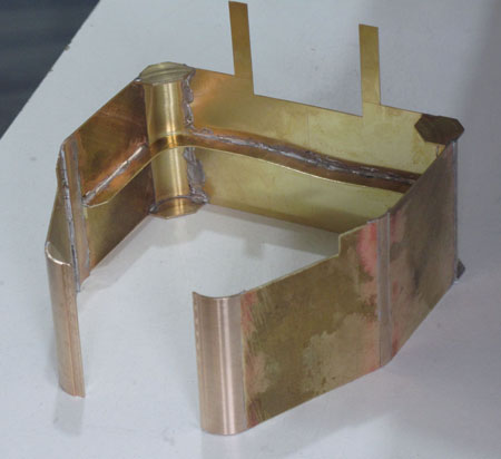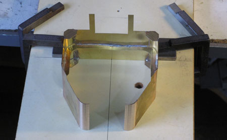 Versteifungs-U hinten erkennt man, wie sich Messingblech bei Erwärmung streckt